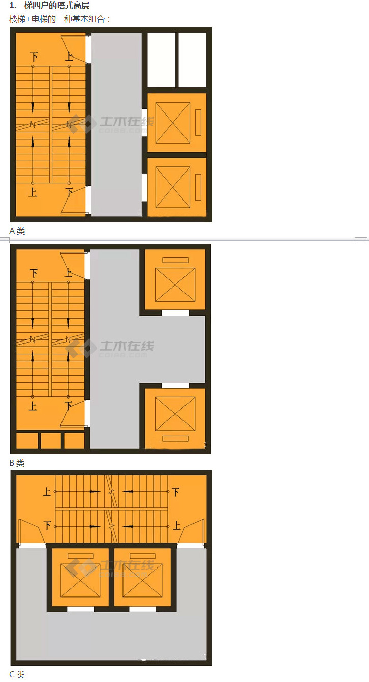 高層住宅樓梯、電梯的24種最優(yōu)組合