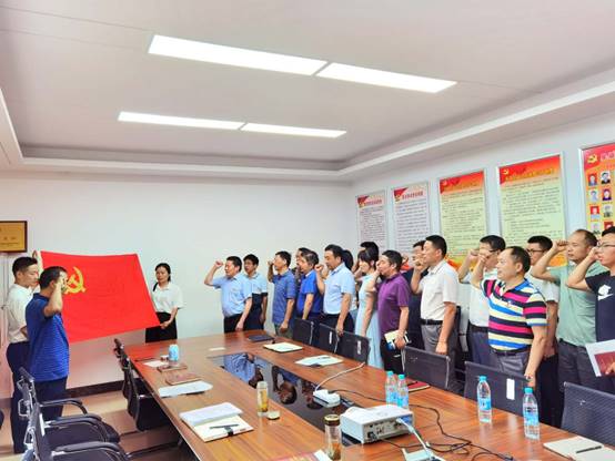 最后,全體黨員面對鮮紅的中國共產(chǎn)黨黨旗,莊嚴(yán)地舉起右手,握緊拳頭,集體宣讀入黨誓詞,重溫入黨時的莊嚴(yán)承諾和堅定決心。紛紛表示,要不斷提高黨性修養(yǎng),堅定理想信念,自覺踐行黨的宗旨,充分發(fā)揮先鋒模范作用,切實把初心使命變成銳意進取、開拓創(chuàng)新的精氣神和埋頭苦干、真抓實干的自覺行動,以優(yōu)異的成績向建黨99周年獻禮。